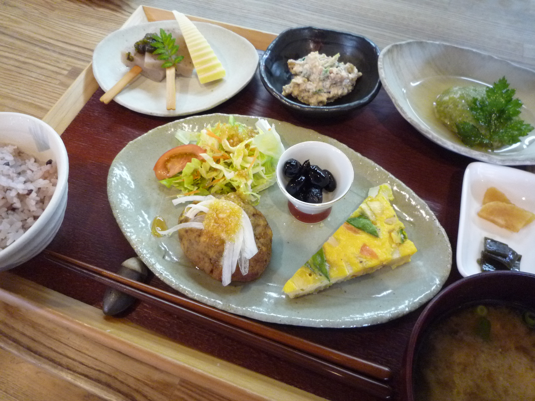 5月のメニューです あいとうふくしモール > 野菜花 > 5月のメニューです ファームキッチン野菜花です。 5月もバタバタするうちにゴールデンウィークが過ぎてしまいました。 掲載が遅くなりすみません。 5月のメニュー紹介です。 野菜花ランチは、よもぎ餅に舞茸を包み揚げしてあんかけで。山椒味噌の田楽、彩りオムレツ、野菜ハンバーグなど5月満載です。 プレートランチは、好評の大豆コロッケに山椒味噌の田楽、わらびの煮物などこちらも季節を感じていただける一品にしてお待ちしています。 また、デザートも一新しました。
